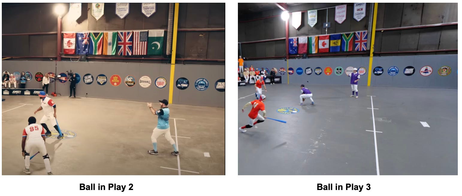 *If a ball gets stuck on top of the side wall it is worth 1-run and the batters trade strike.