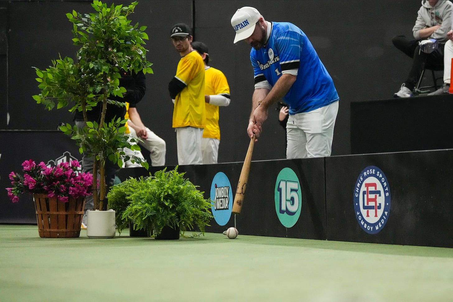 Each inning a team may earn 1 chip shot. A chip shot is earned when a drive is hit off the back wall, untouched by fielders, but doesn’t make it to the green